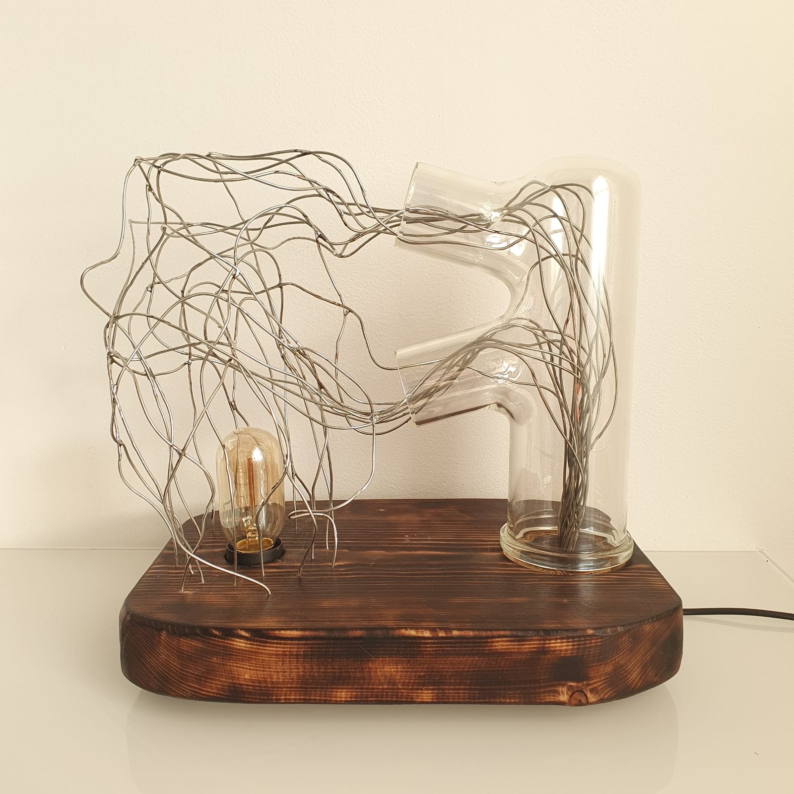 “Flusso” Lampada Artistica realizzata con convertitore laser e fili di rame – accensione touch a 3 intensità