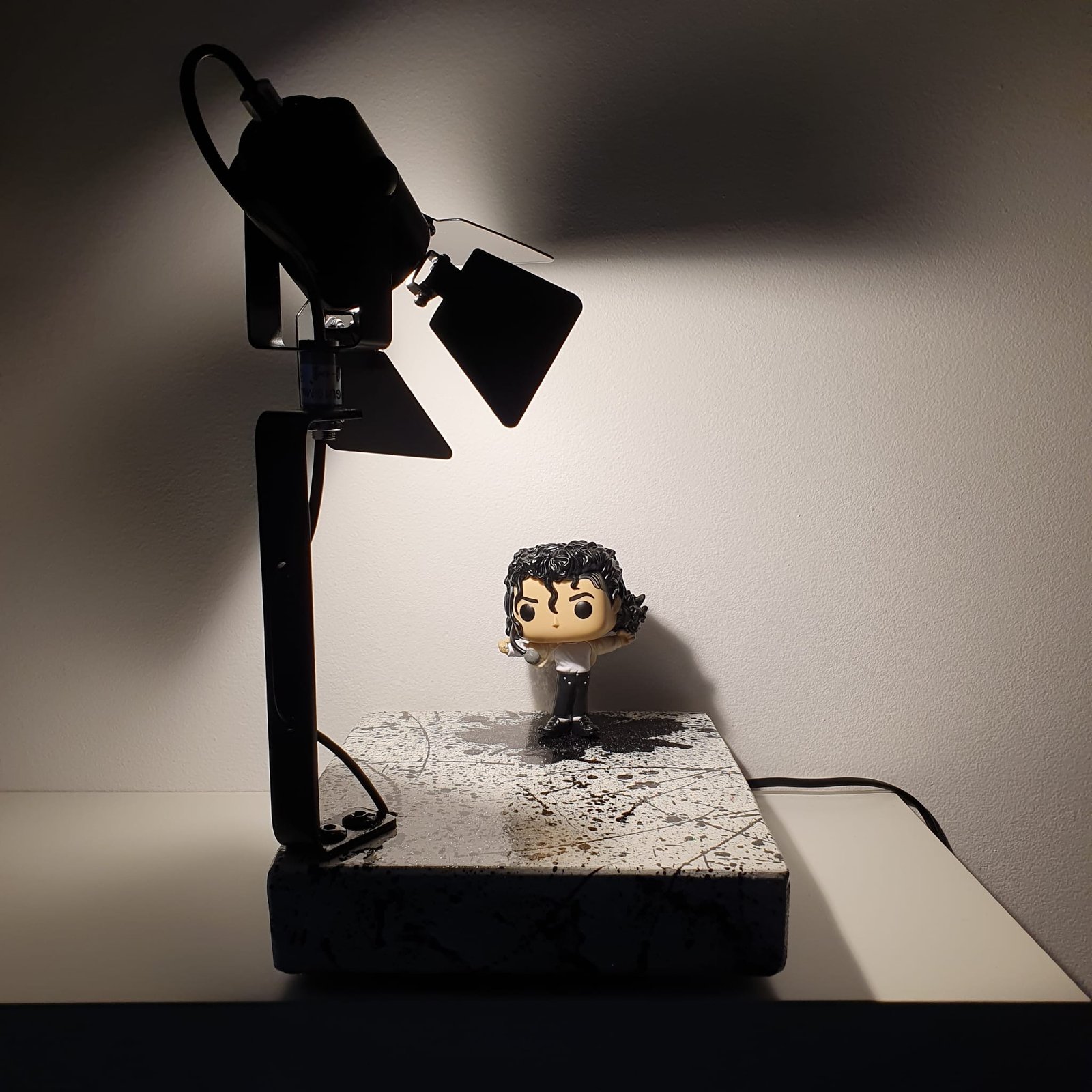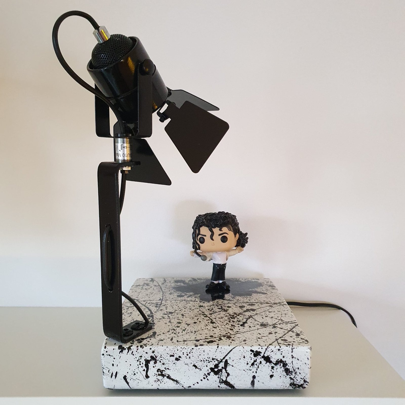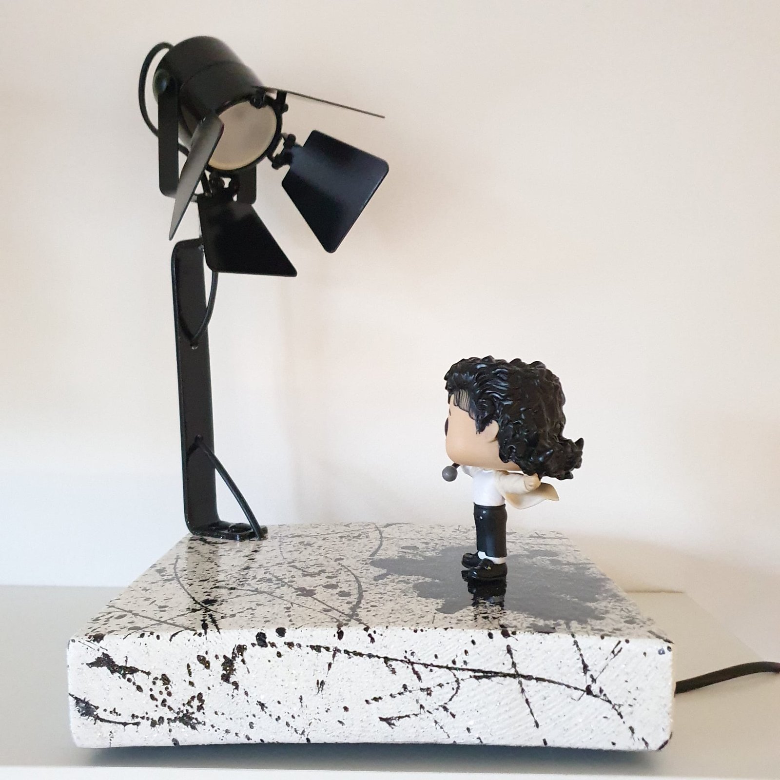 Porta un tocco di stile e creatività nella tua casa con questa lampada artistica dedicata a Michael Jackson, realizzata con Funko Pop originale e illuminazione RGB con telecomando.