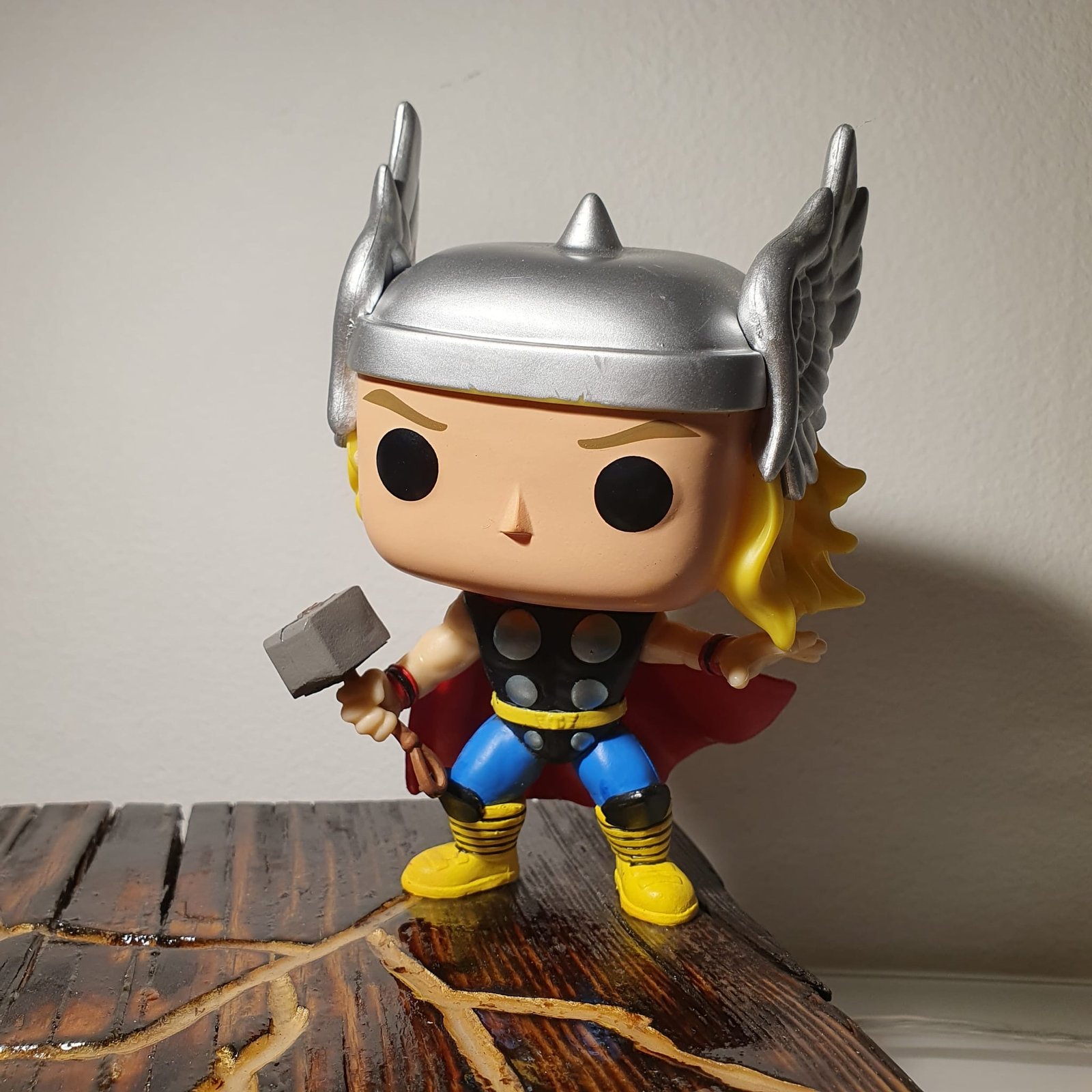 Funko Pop originale di Thor inserito in una composizione artistica.