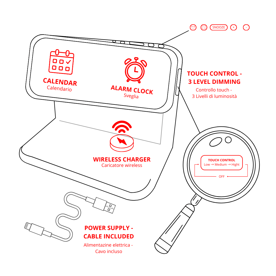 Doppia sveglia con funzione snooze – Ideale per chi ha orari diversi o vuole un promemoria extra.