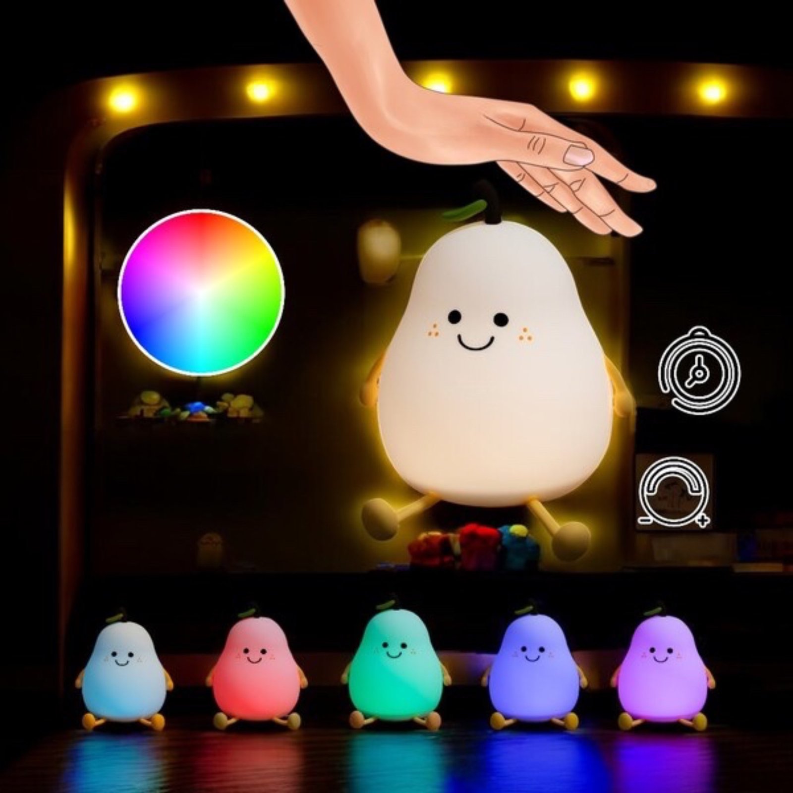 Puoi decidere se preferisci una luce calda, che crea atmosfera, o se sei in un mood più colorato, soddisferà i tuoi desideri.Sulla modalità luce notturna puoi scegliere tra 3 intensità di luce, sulla modalità colore, puoi cambiare i colori quando vuoi, basta un tocco. La lampada è provvista anche di timer che ti permettono di decidere il tempo di accensione ed evitarne l’utilizzo quando non necessaria.