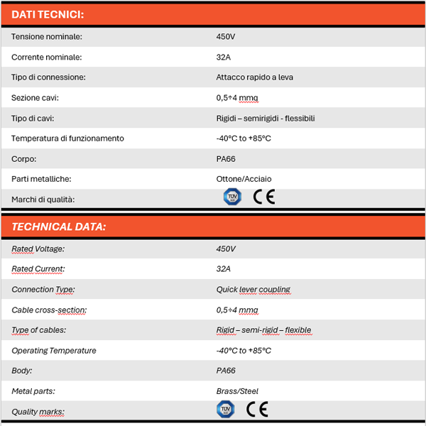 Con il sistema di collegamento rapido a levetta questi componenti permettono in modo semplice, veloce e sicuro la connessione con fili di diversa sezione e tipologia.