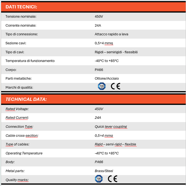 Con il sistema di collegamento rapido a levetta questi componenti permettono in modo semplice, veloce e sicuro la connessione con fili di diversa sezione e tipologia.